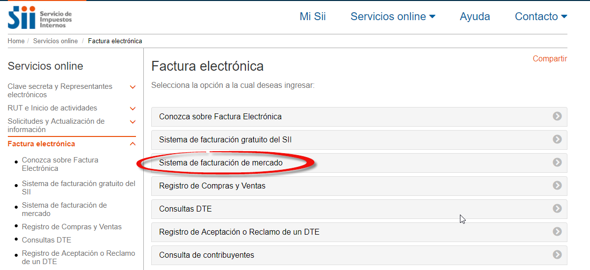 Ingresar al sitio web del SII, opción Factura Electrónica