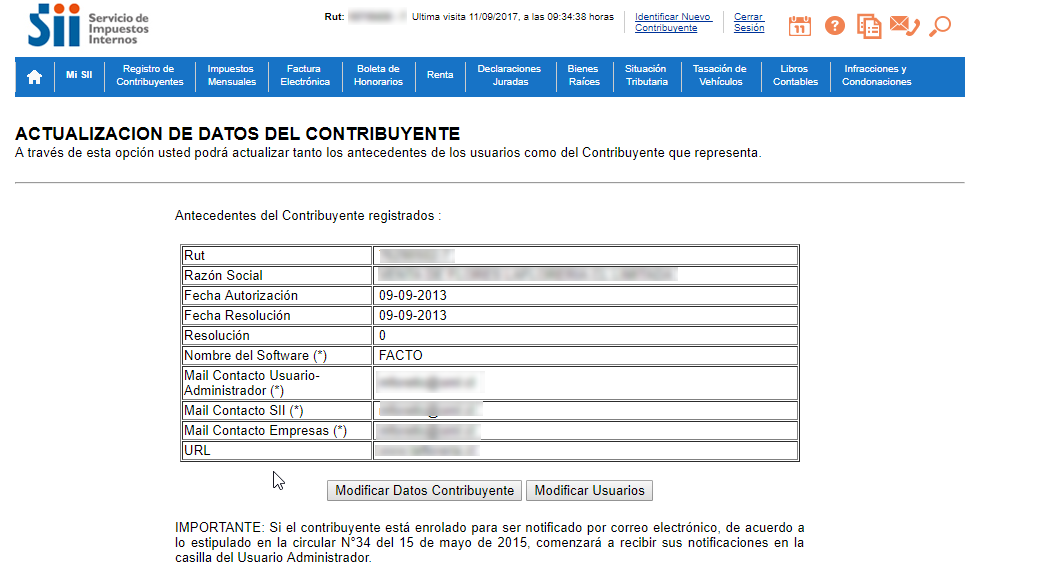 Completa el RUT de tu empresa y presiona el botón "Modificar usuarios"