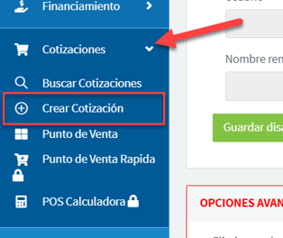 Para crear una cotización nos dirigimos al módulo Cotizaciones >> Crear cotización: