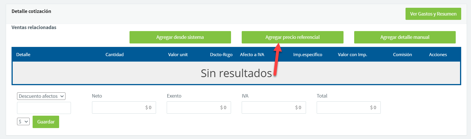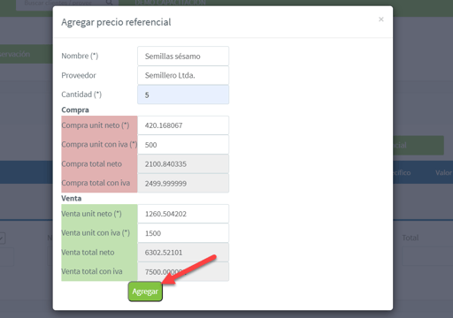 Agregar precio referencial: