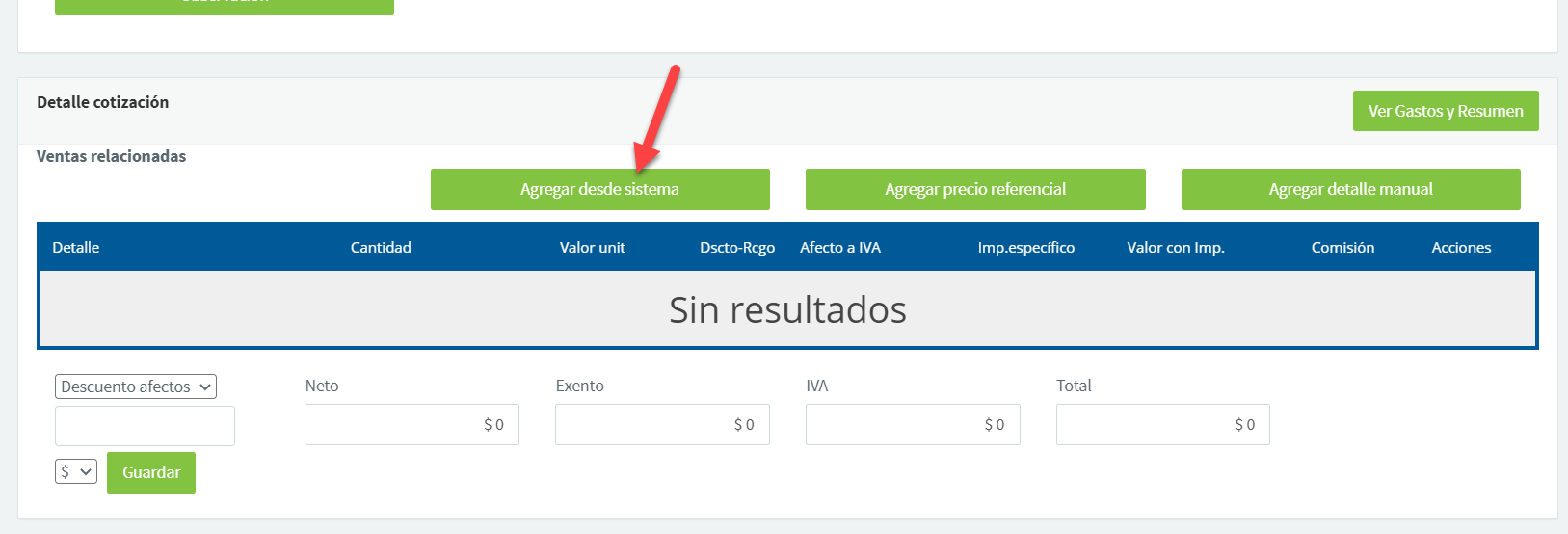 Agregar desde sistema:
