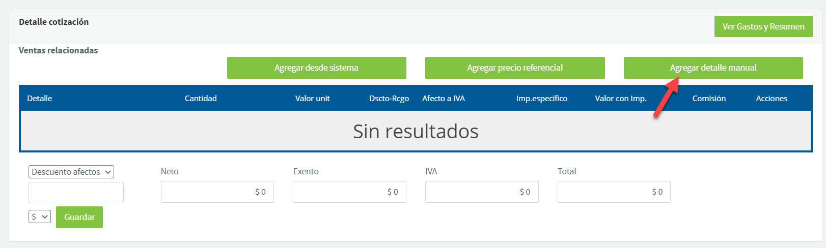 - Agregar detalle manual