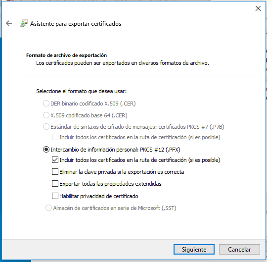 ¿Cómo exporto el certificado digital en formato pfx desde mi computador?