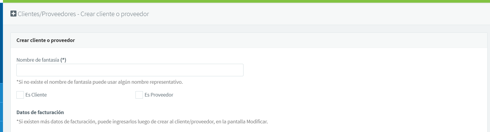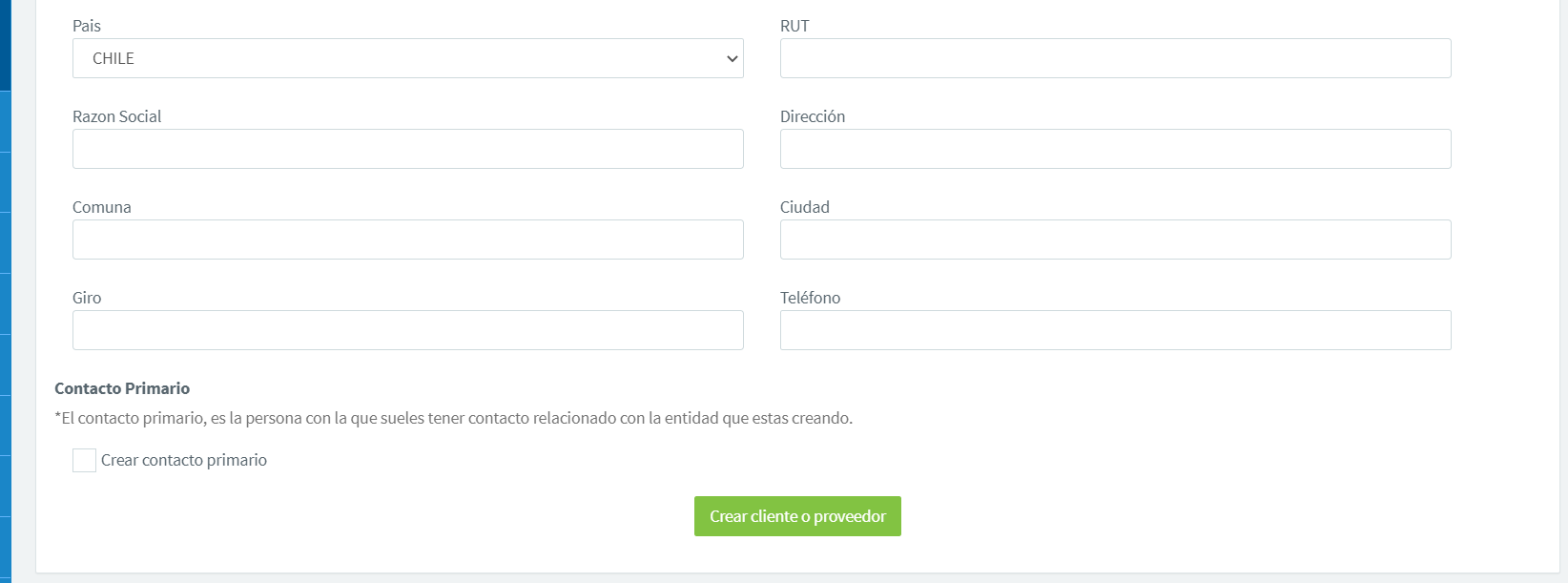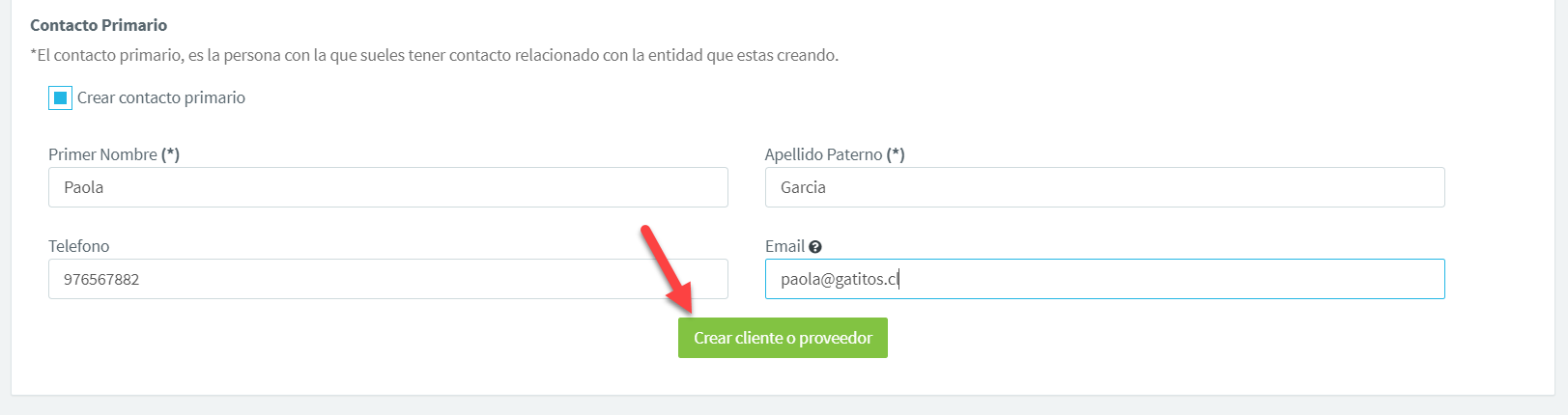 Luego de llenar todos los datos correspondientes, haces click en Crear cliente o proveedor.
