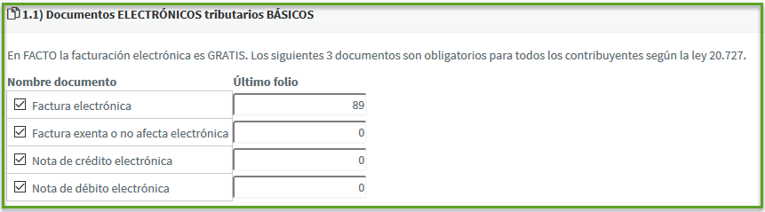 Primero en esta opción están los documentos tributarios electrónicos básicos de Facto, que son aquellos que se pueden utilizar de forma gratuita: