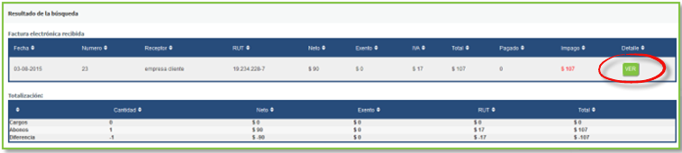 Luego de realizar los cambios deseados en el documento, presionamos el botón "Modificar", con lo que volveremos al detalle del documento ya modificado.