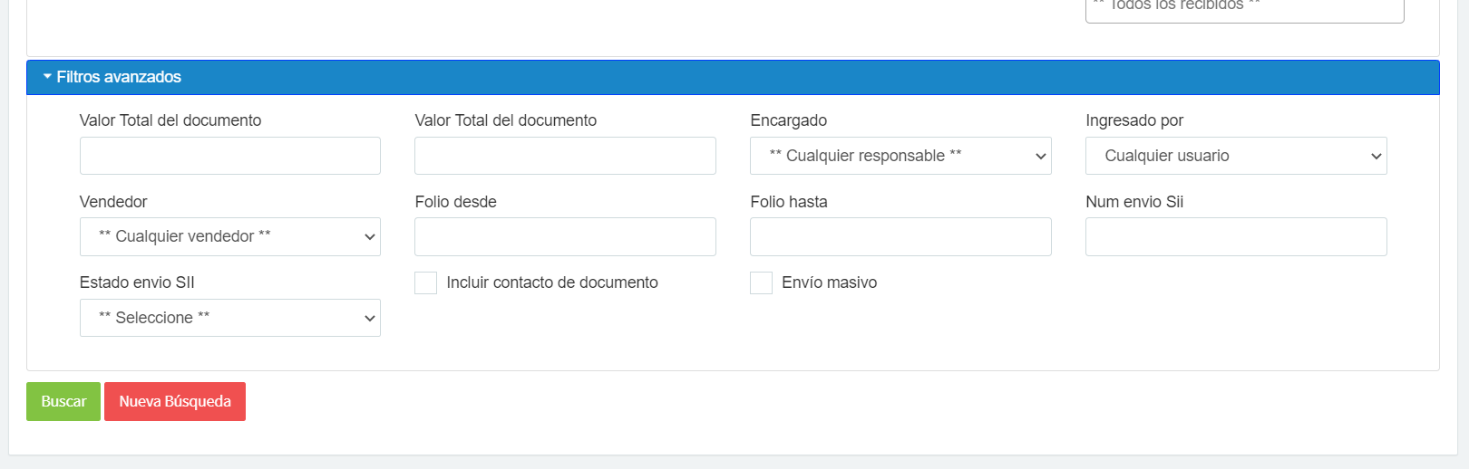 Estando ya en el módulo podrás visualizar diversos filtros de búsqueda, están los filtros básicos: