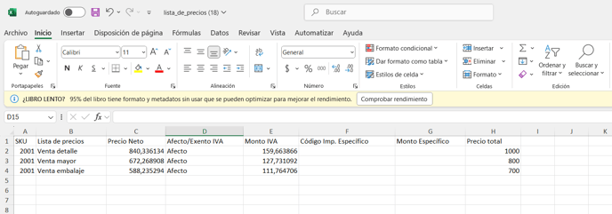 Para el siguiente paso a paso se usarán de ejemplo tres listas de precios: