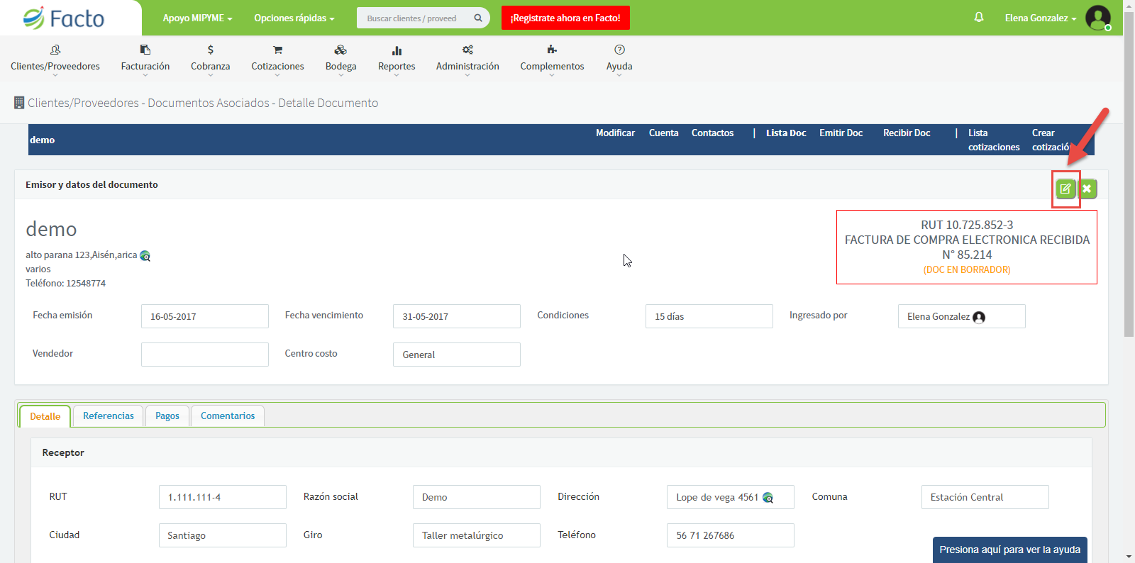 1) Para editar documentos de compra debes ingresar a Facturación >> Buscar DTE. (Para una mejor búsqueda solo marca la opción Buscar en Documentos Recibidos