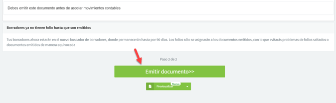 Por último, sólo resta emitir el documento, debes hacer click en el botón "Emitir documento tributario":