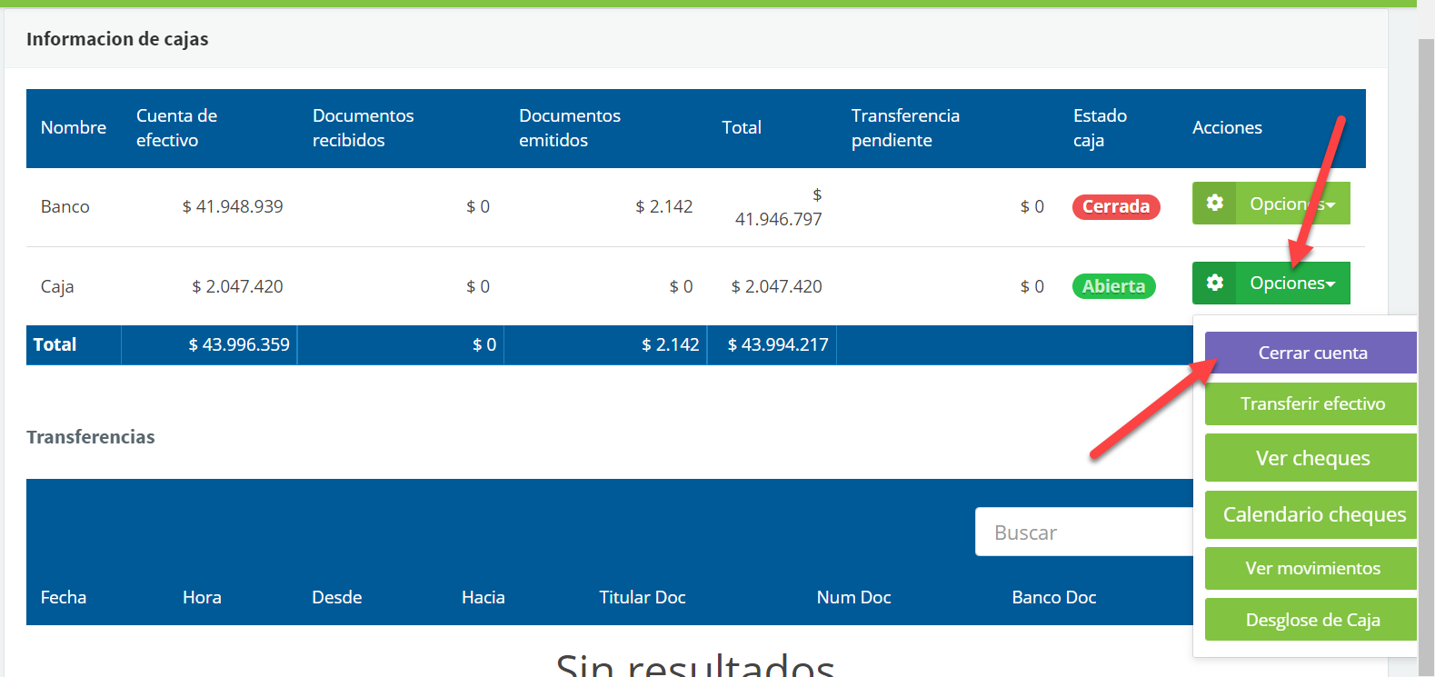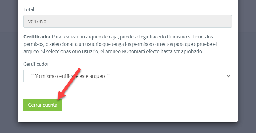 Y, si la caja está abierta, el botón te permitirá hacer cierre: