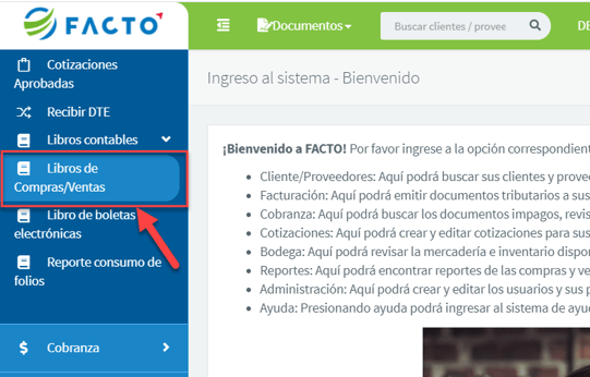 Puedes visualizar los libros de Compras/Ventas en el módulo Facturación >> Libros contables >> Libros de Compras/Ventas: