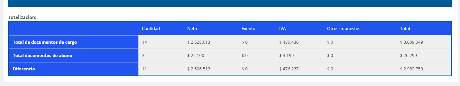 En la parte final aparecerán la totalización: