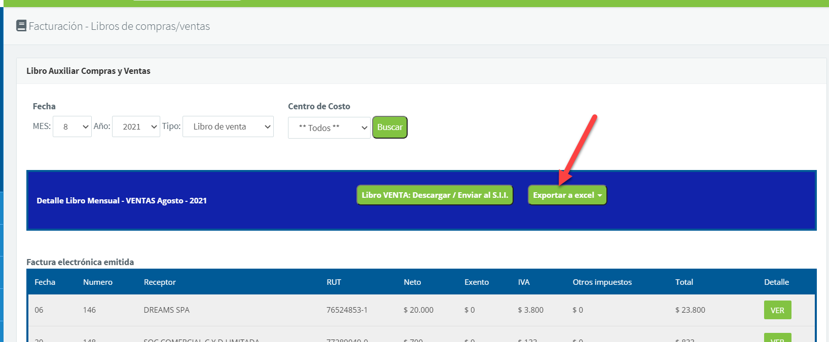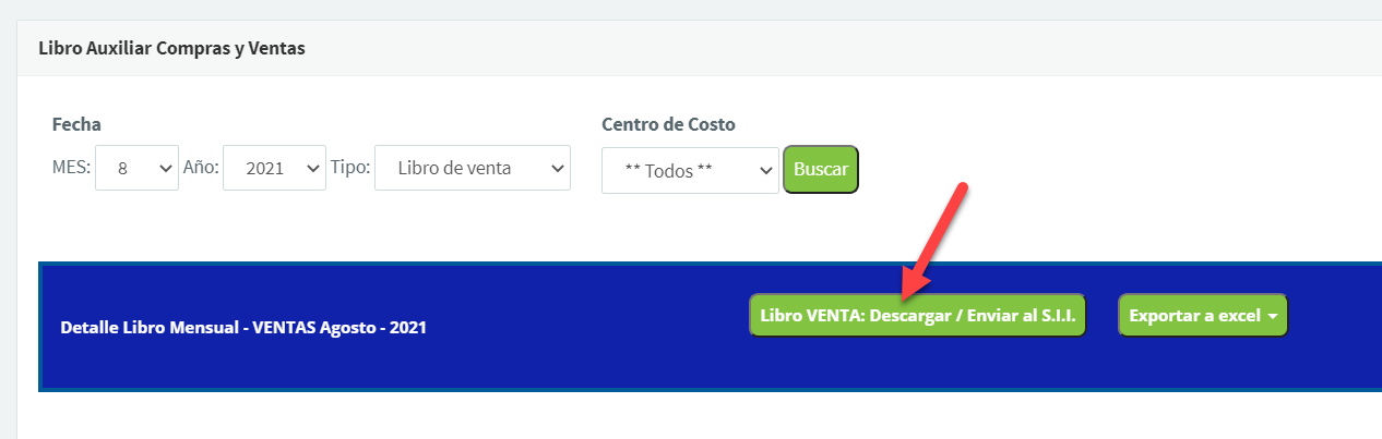 Acciones que puedes realizar son, exportar a un archivo Excel el libro de compra/venta: