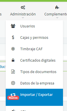 Para exportar necesitas tener permiso de administrador. Ingresa a la opción Administración >> Importar/Exportar