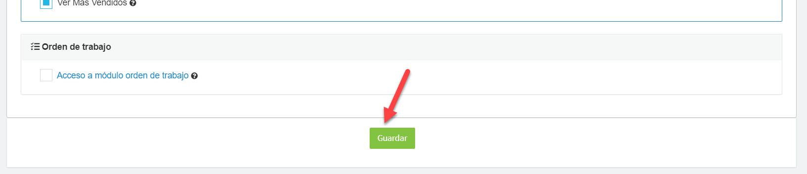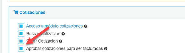 Luego de ello, sólo resta marcar la casilla correspondiente al permiso para aprobar cotizaciones, y por último guardar: