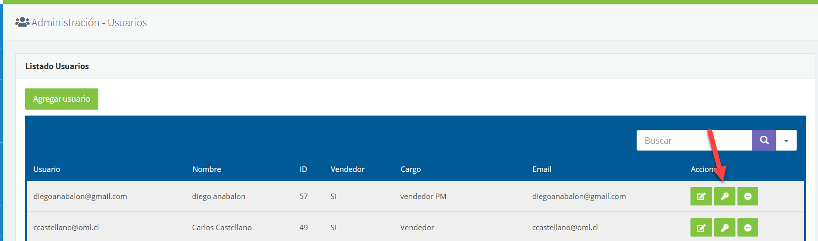 Para aprobar una cotización, primero que nada el usuario debe tener permisos para aprobar cotizaciones, estos permisos se asignan en el módulo Administración >> Usuarios, habiendo ingresado al módulo haces click en el botón de Permisos: