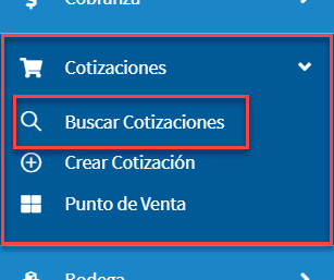Para visualizar las cotizaciones, debemos ir al modulo de Cotizaciones -> Buscar Cotizaciones:
