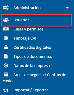 Al momento de ir al modulo de administración nos dirigimos al submenú ''usuarios''.