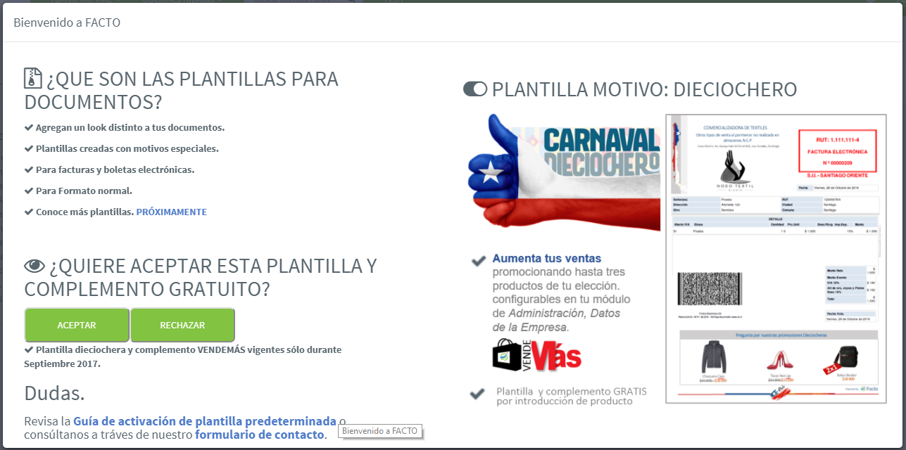 2. Acepta la plantilla predeterminada en la pantalla de bienvenida o directamente desde el Módulo de Administración, Datos de la Empresa