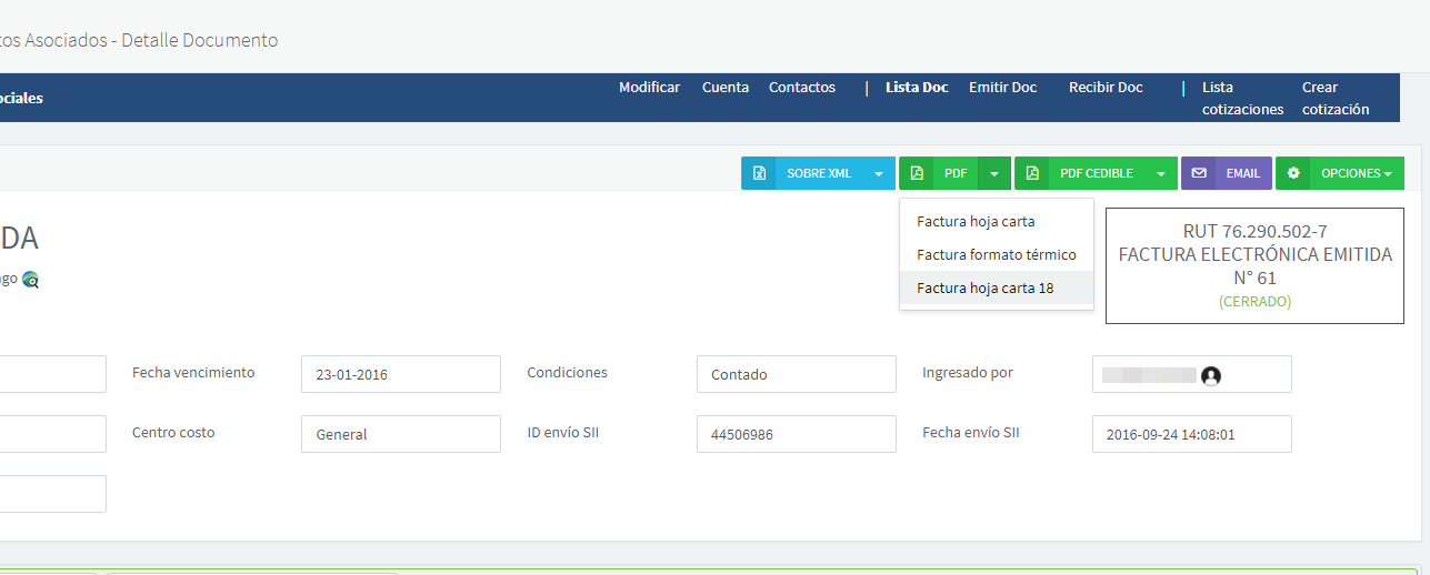 4. Imprime con tu plantilla predeterminada o selecciona la deseada en la opción PDF, al momento de emitir documento: