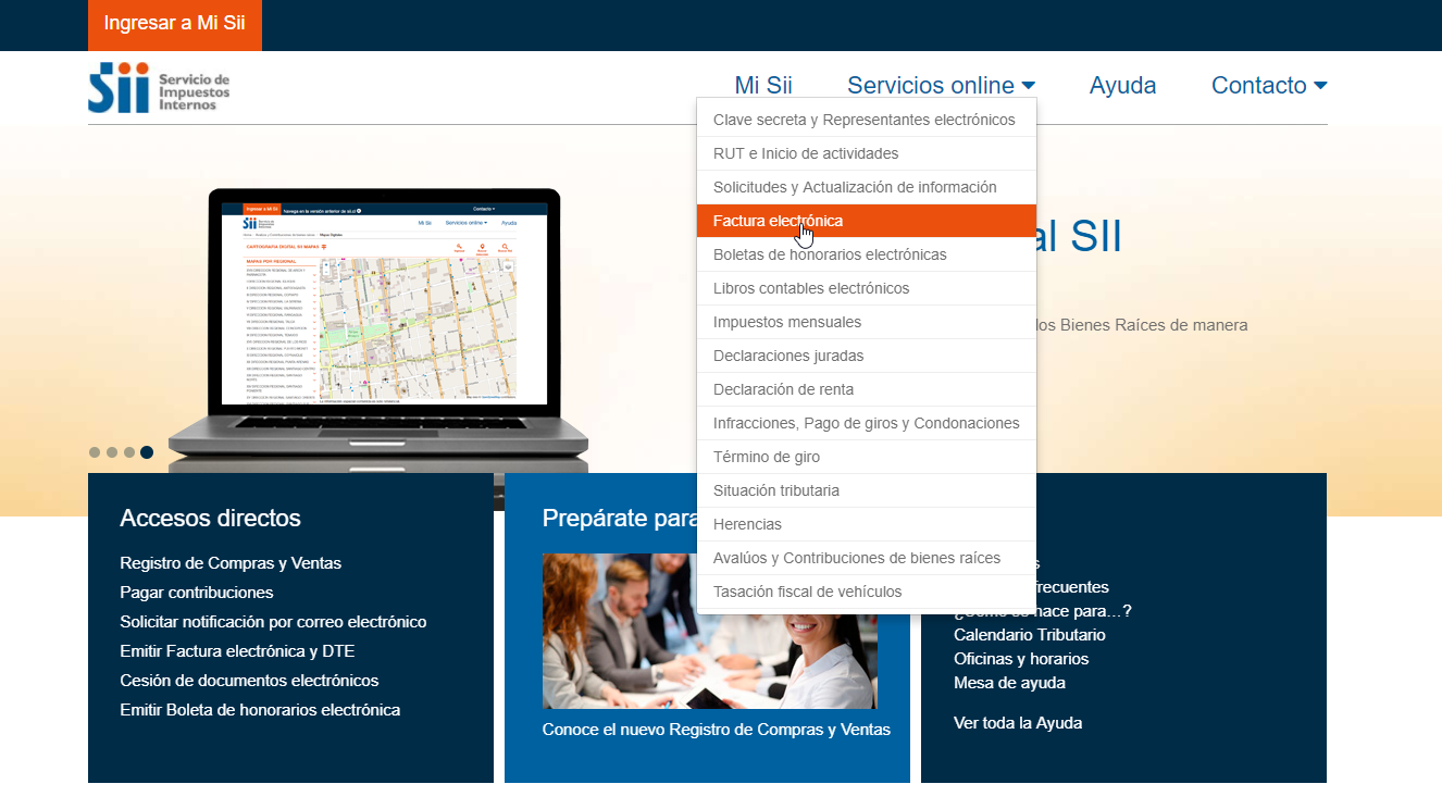 Ingresar al sitio web del SII, opción Factura Electrónica