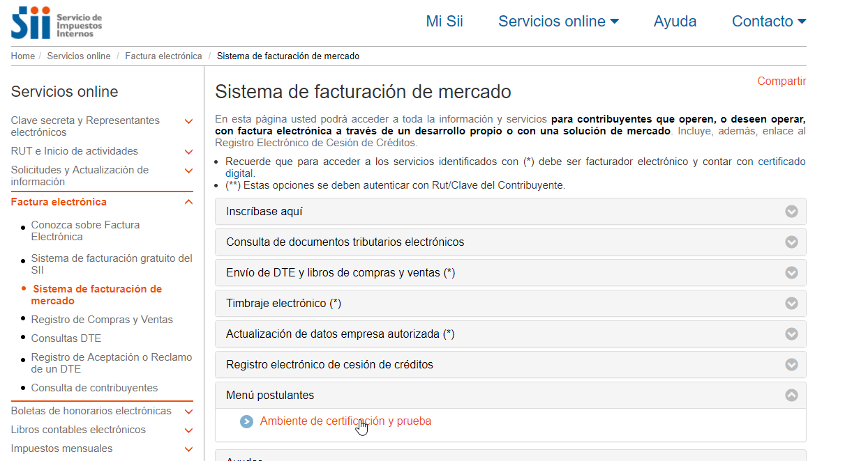Ingresa a la opción Menú postulantes >> Ambiente de certificación y prueba