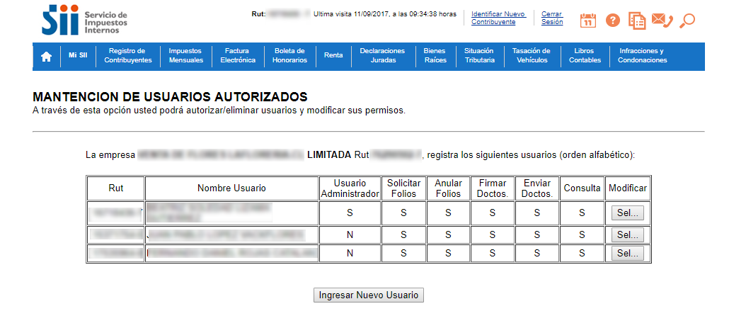 Completa el RUT de tu empresa y presiona el botón "Modificar usuarios"