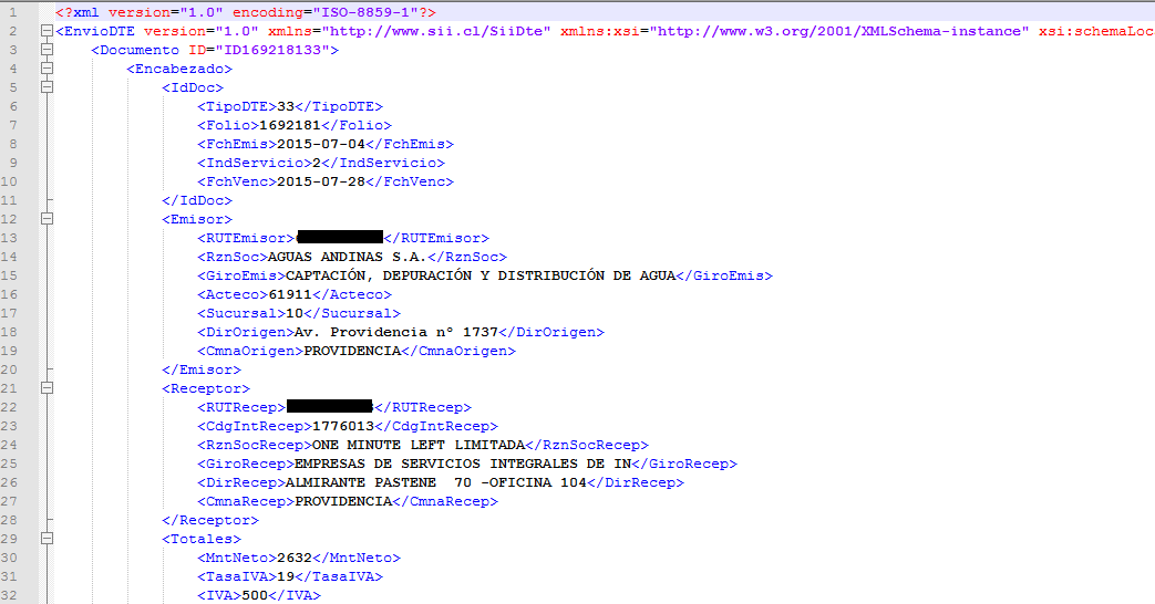 Un ejemplo de documento en formato XML abierto en un editor de texto, se vería como el siguiente (no debe intentar editarlo manualmente):