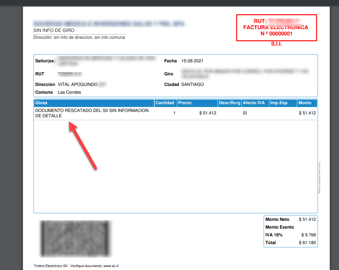 Para que puedas visualizar el detalle en los DTE recibidos es necesario que le indiques a tus proveedores que deben enviar los DTE a la casilla de intercambio de Facto chile@factointercambio.com, cuando tu proveedor no envía el DTE a la casilla de Facto el documento llega directamente al SII y Facto realiza el trabajo de importar de forma automática el documento desde SII a Facto, pero al ser importado desde SII no tiene el detalle incluido, por lo cual, lo mejor es que tus proveedores envíen el DTE a la casilla de Facto, con eso podrás visualizar el detalle del documento.