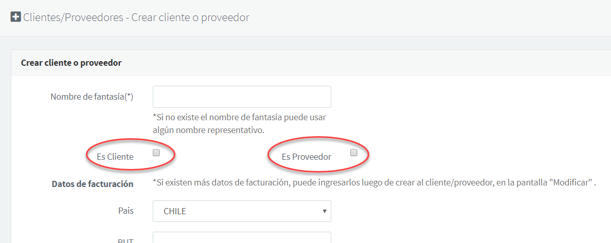 Si la empresa es tanto cliente como proveedor, solo debe marcar ambas casillas "Es Cliente" y "Es Proveedor", si ese no fuera el caso, solo marcar la que corresponda. Si no están marcadas las casillas correspondientes, podría tener problemas al querer ingresar el cliente correspondiente en una factura u otro documento.